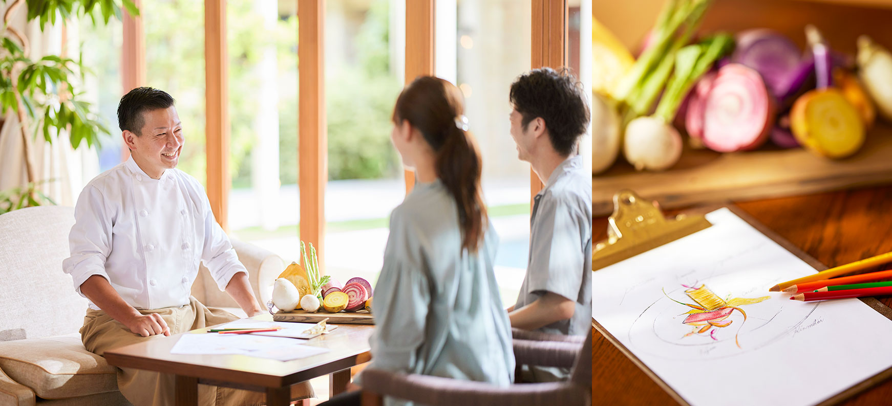 メニューの詳細は専属のシェフがおふたりと直接打合せをしながら、一緒に作りあげていきます。
