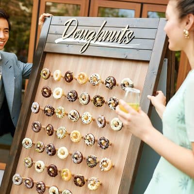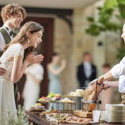 可愛らしいスイーツや色鮮やかなドリンクを並べたビュッフェや目の前でシェフが臨場感たっぷりに調理するバーベキューなど、ガーデンならではの演出でおもてなしを。楽しい演出の数々に自然と笑みがこぼれます。