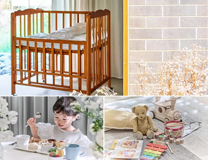 授乳が必要なお子様をお連れの方には、授乳室をご用意しています。ベビーベッドやキッズスペース等も完備していますので、安心してご利用いただけます。