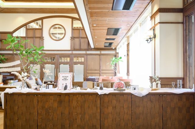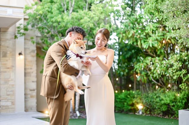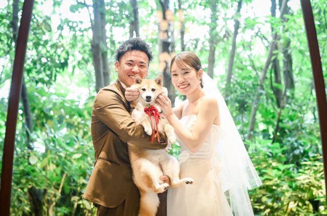 元々、アーブルオランジュの木目の雰囲気がとっても好きでした。会場見学にいった際に、会場全体のウッドな雰囲気、料理の美味しさ、ペットに優しいところ、プランナーの志治さんをはじめ、スタッフの皆さんの対応に惹かれて、絶対にアーブルオランジュで結婚式を挙げたい!と思い、即決でした。