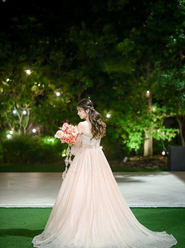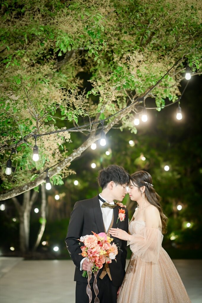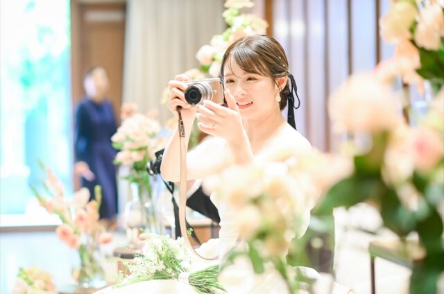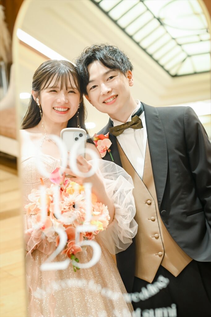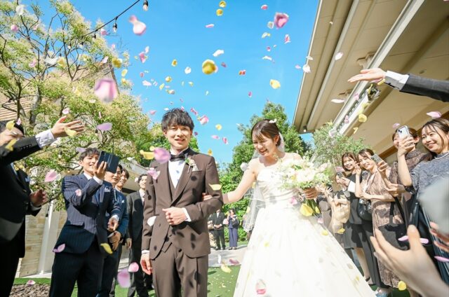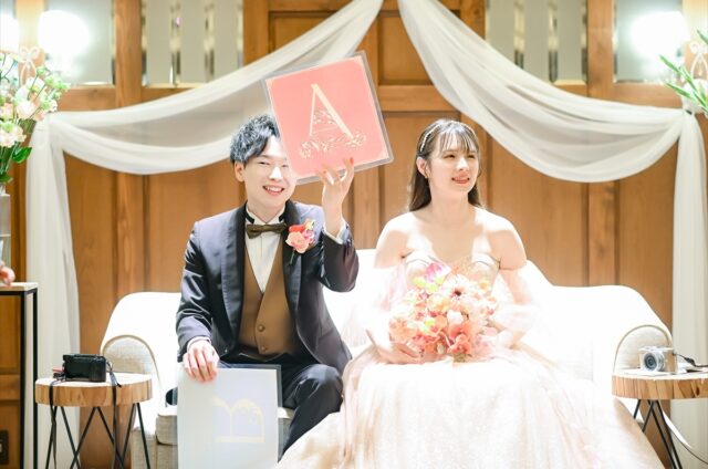 当日はとにかく楽しくて、幸せすぎる一日でした。夏の式ということもあり、暑さ対策に懸念はありましたが、色んな配慮をしてもらいました。遠方から来たり、久々に会う友人もいたので、ゲストとの時間をとにかくたいせつにしたい思いを当日の進行でも汲み取ってもらいました。みんなで楽しめる演出として格付けチェックを提案してもらい、これが大盛り上がりで大好評でした。エンドロールや写真を見返していても、当日に見ることのできなかった家族や友人の表情を見れて幸せな気持ちになります。