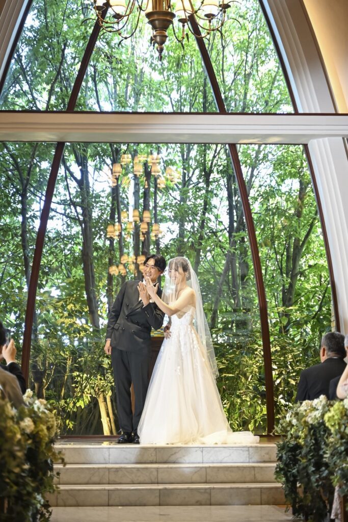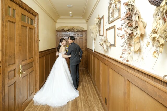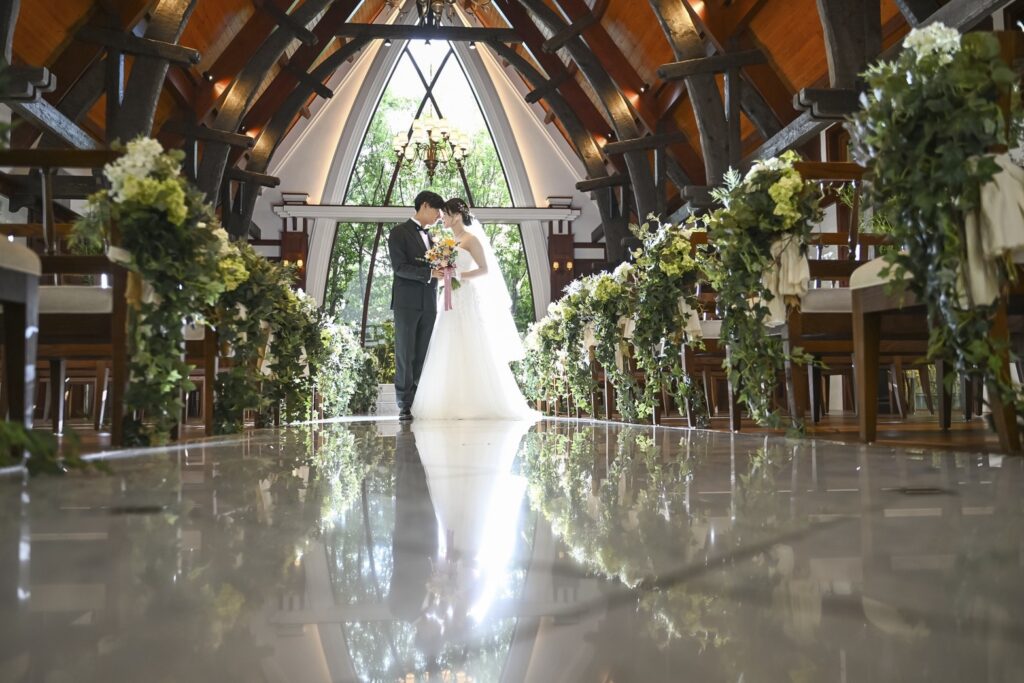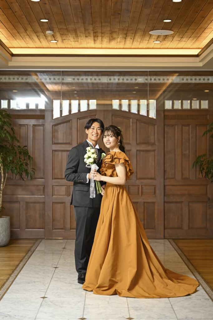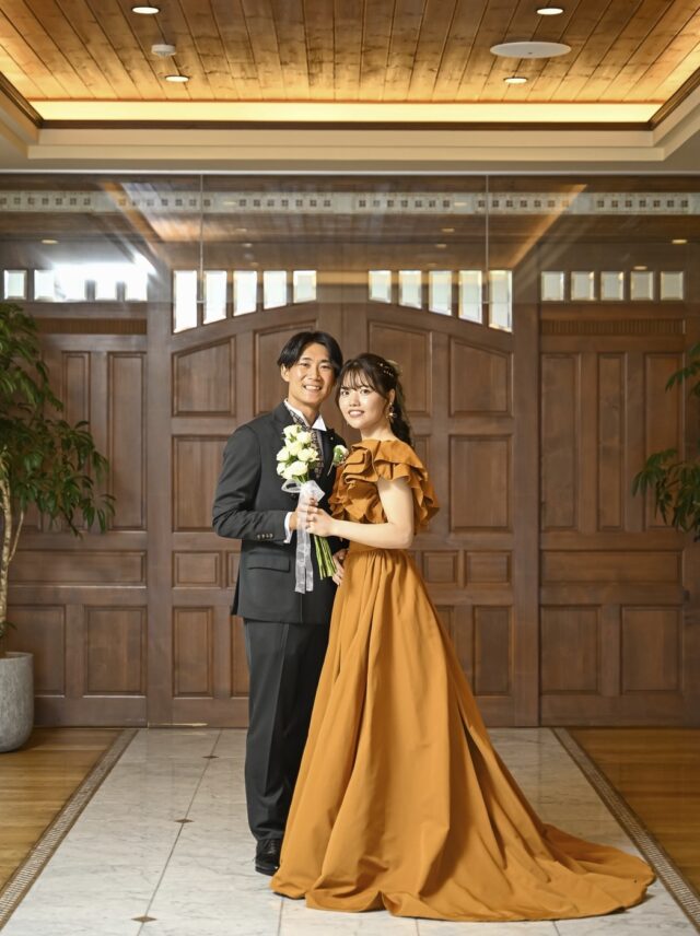 式場探しをしているときにたまたまアーブルオランジュを見つけて、「木のぬくもりや自然の雰囲気がとても素敵だな」という印象を受け、ブライダルフェアに伺いました。実際にチャペルを見たときに心が踊るような感覚になり、またその時対応してくれた担当プランナーの山田さんと一緒に結婚式を創りたいと思いアーブルオランジュに決めました。