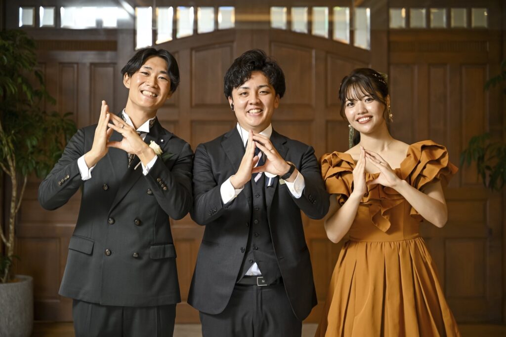 私たちの結婚式はゲストに楽しんでもらうことはもちろん、「みんなで創り上げる結婚式にしたい!」とたくさん考えて準備しました。当日は余興で新郎&新婦の友人が協力してダンスを披露してくれました。途中からは新婦弟も登場して一緒に踊ってくれて、驚きと笑いの連続で会場が一気に盛り上がりました。挙式から披露宴まで笑顔が溢れる結婚式にすることができたのは、間違いなく当日来てくれたゲスト全員のおかげだと思っています。私たちの結婚式に快く駆けつけてくれたゲストに改めて感謝したいです。